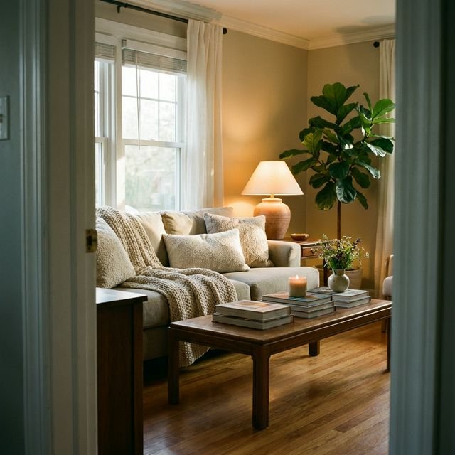 Pick one warm accent color (terracotta, sage, or navy work well) and thread it through 3+ rooms — a pillow here, a candle there, matching towels in the bathroom. Creates visual cohesion that makes your home feel “designed” instead of “collected randomly.”